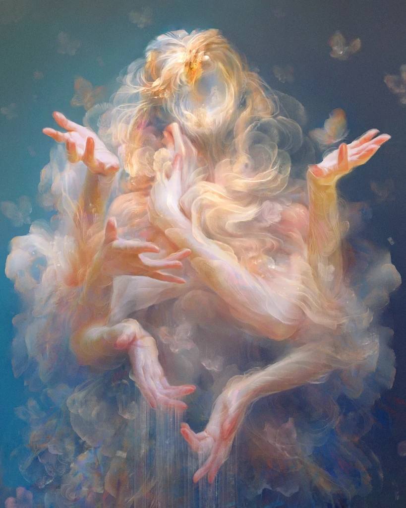In the whirlwind of the modern world, technology becomes an integralpart of our lives, wrapping us in a soft, almost imperceptible fabric,penetrating every aspect of our life.This invisible yet tangible layerbecomes part of our existence, offering support, but at times alsocausing dependence.This scene conveys the beauty and complexity of theinteraction between humans and technology, emphasizing their deepinfluence on our life and serving as a reminder of the importance ofmaintaining balance and not losing ourselves in this smooth immersion.
