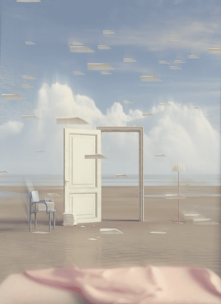 TV Night is a dreamy representation of my perception of the world. It reflects a daily routine—a choice we make every day. Even though the outside world is full of beauty and wonder, we find ourselves confined to the comfort of our homes, experiencing that same outside world through a TV screen. It’s a curious and paradoxical behavior that disconnects us from reality while simultaneously deepening our connection to what’s happening beyond our walls.