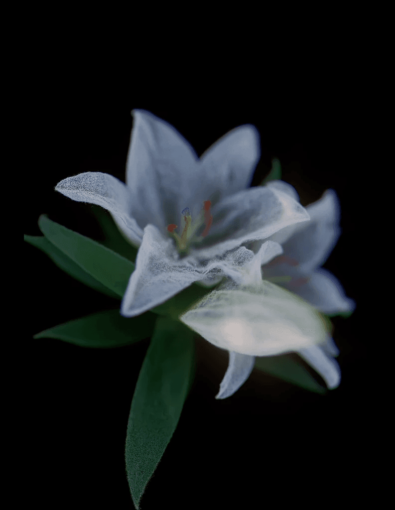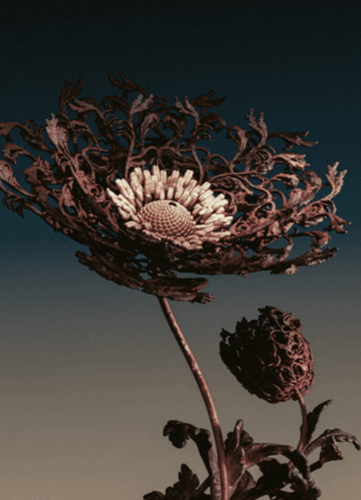 Digital flower created using procedural tools.NFT comes with aphysical print editionPrint details:Giclee print on HahnemuhleHahnemuhle Photo Rag Metallic paperWalnut frame, off whitepassepartout, UV resistant AR70 museum glass