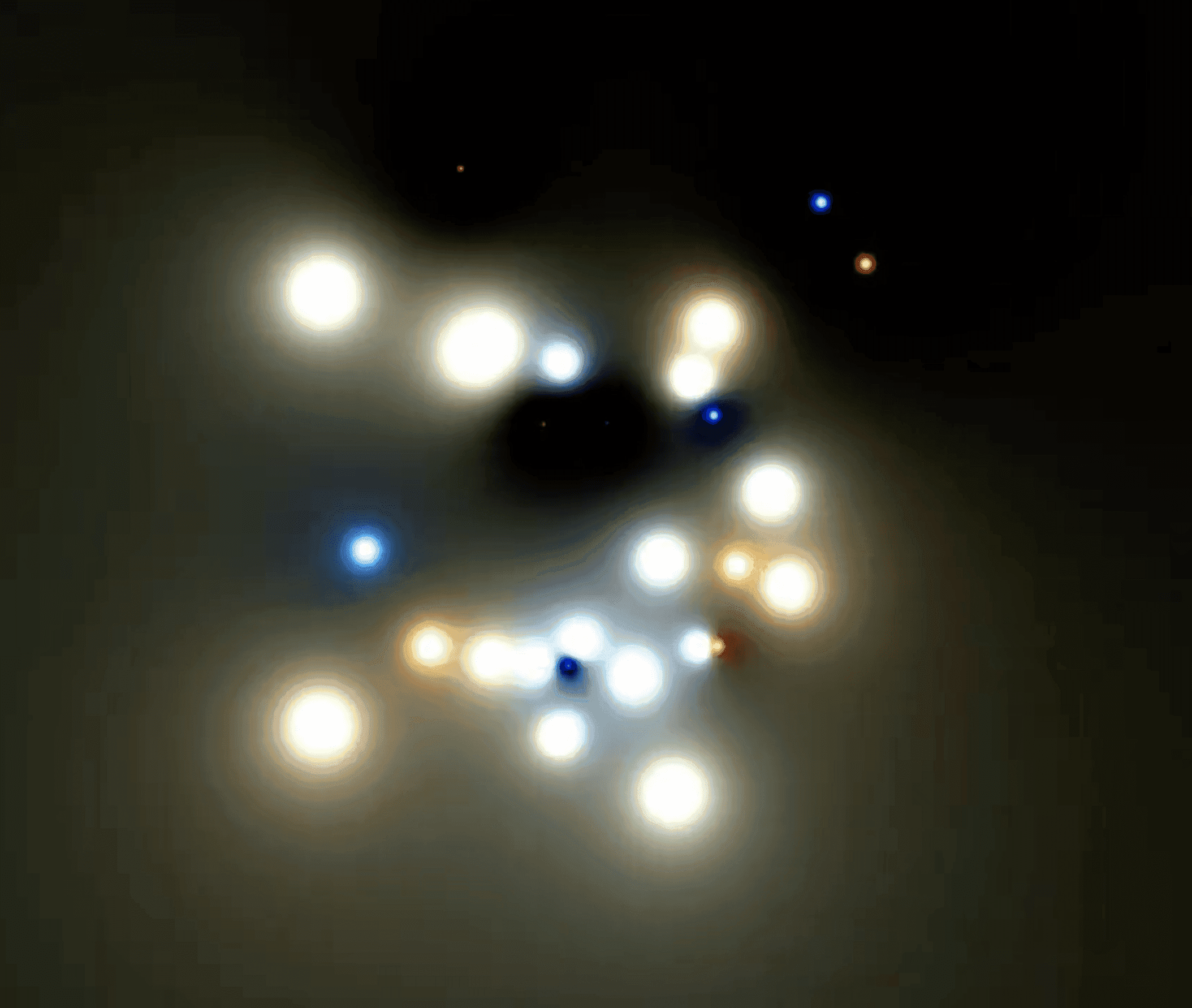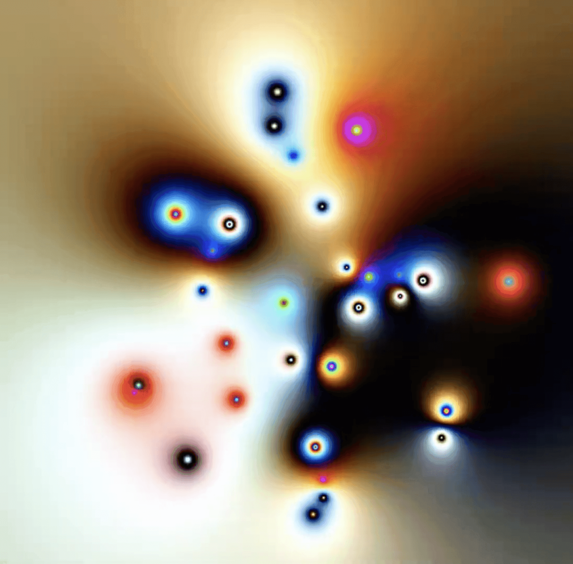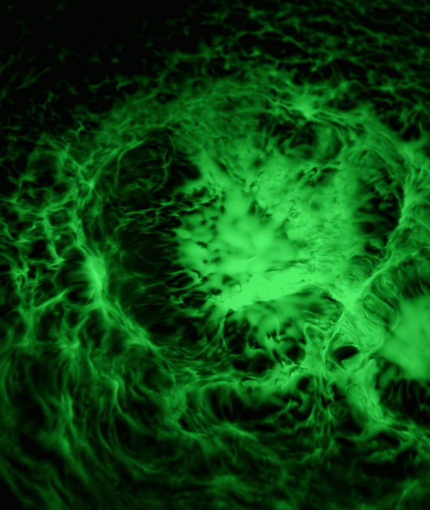 Filming of orchestrated chemical reactions using non-pigment based compounds. Using drops of these various products, I build layers of stable liquid and break them apart. Colors come from the reaction. Dimensions variable