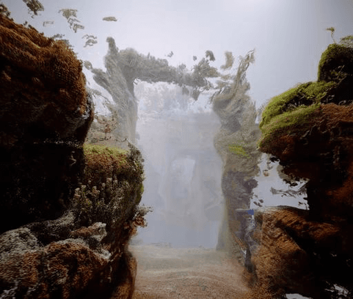 A moment which explores the threshold of semblance and a spectral disintegration harkening back to natural basics. Man made structures become nothing but building blocks of liminal space for the imagination.