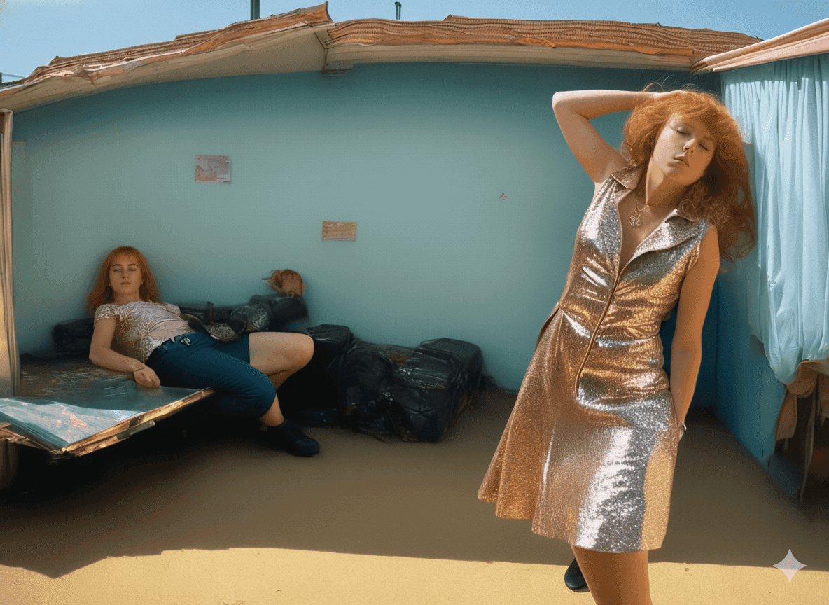 Here the body becomes its own shelter. Petals gather across the face, fabric folds across the torso, and together they construct a space that is both protective and luminous. To cover is not to vanish; it is to create boundaries, to define presence on one’s own terms. Sanctuary, in this image, is not somewhere else. It is here, made in the act of shielding, in the choice of what to show and what to hold back.