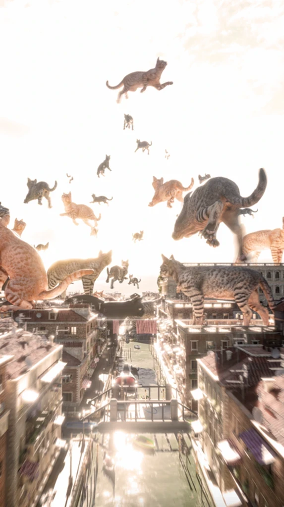 �JENSEITS� is a surreal animation featuring shimmering, dreamlike cats gliding over Venice, with a focus on San Lorenzo. The cats, embodying fluidity and stillness, reflect Venice�s duality�suspended between land, sea, past, and present. San Lorenzo�s layered history of transformation mirrors the cats� flight, symbolizing transcendence and renewal.