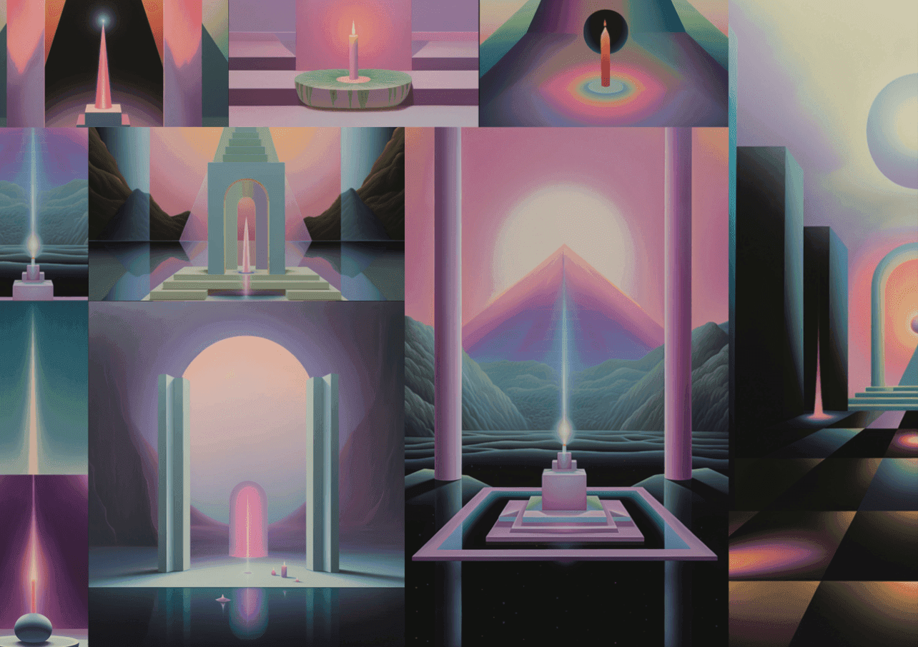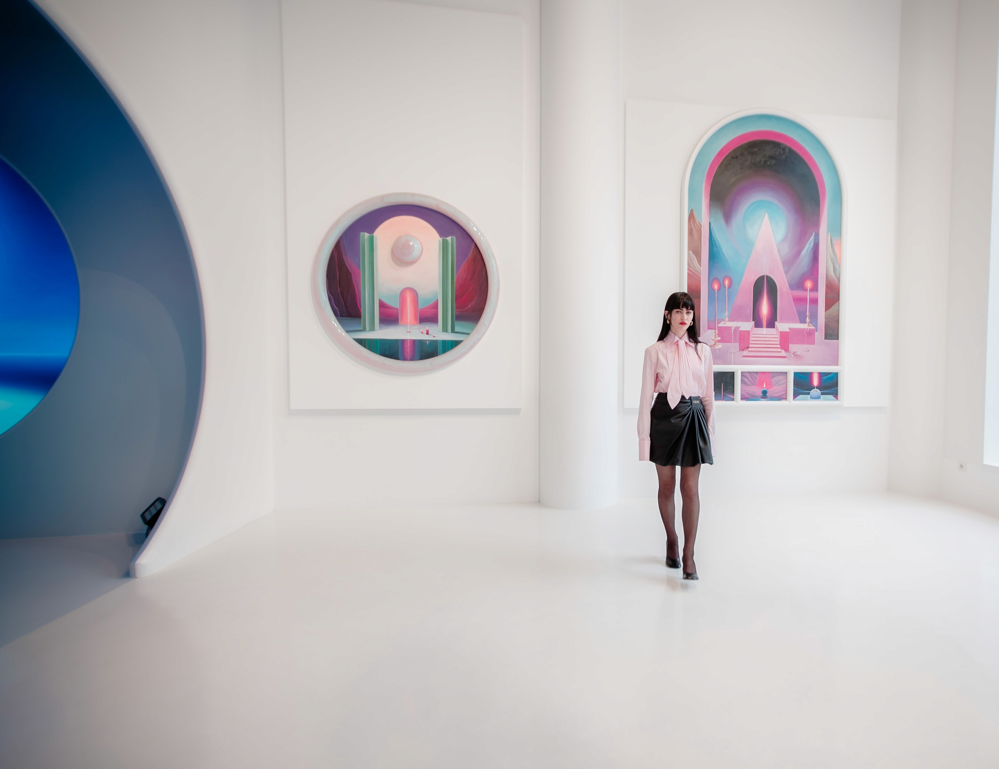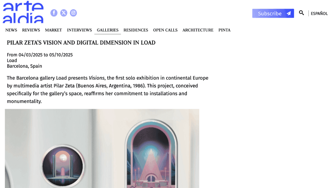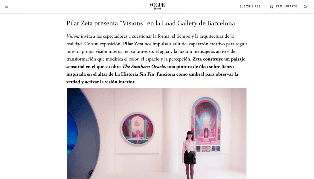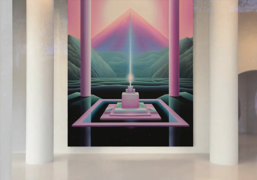 Pilar Zeta has emerged as a leading figure in this new surrealist landscape. Her distinct style—mystical futurism—is defined by a precise interplay of minimalist, surrealist landscapes, vibrant colour palettes, and deconstructed geometric forms. Her work draws from symbolic codes and the language of the subconscious, linking her practice to ancient architecture, the surrealists Salvador Dalí and Sofía Bassi, and other key figures such as Constantin Brancusi and Anna Maria Maiolino.